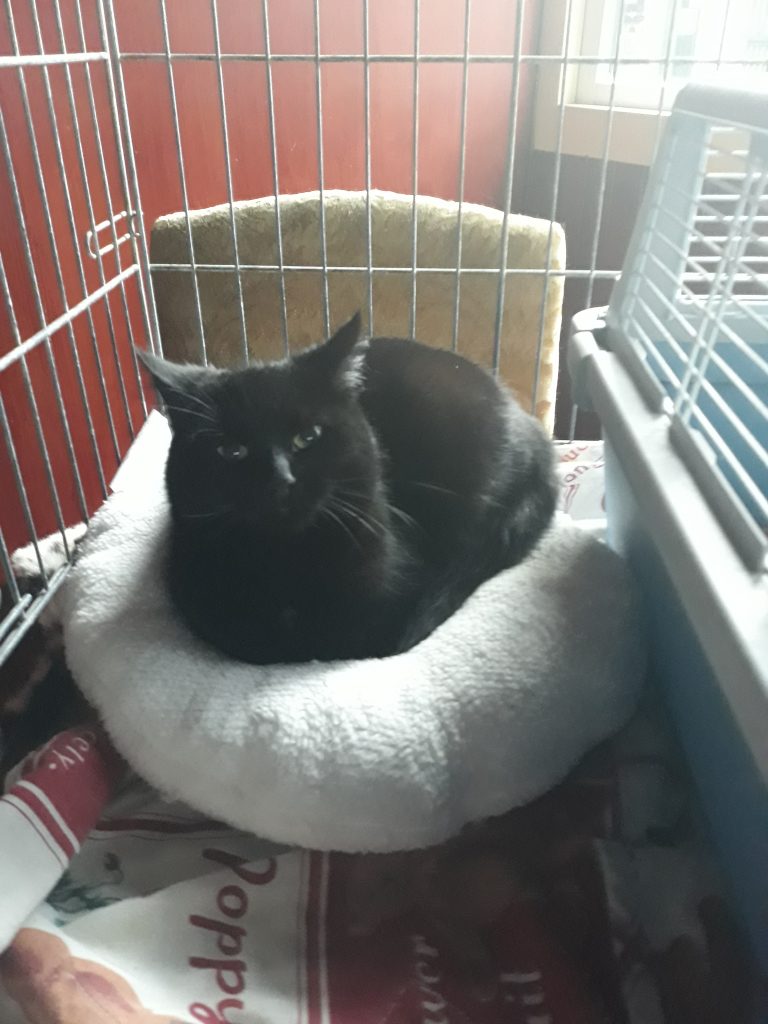 Ze heet Aanloop en dat is ze ook. Zomaar aan komen lopen en geen idee waar ze vandaan kwam. Uiteraard eerst onderzocht of ze nergens werd gemist/vermist maar dat bleek niet het geval te zijn. Het was in ieder geval geen poesje wat gewend was om in een huis te leven want het was een redelijk ‘wild’ geval wat graag gebruik maakte van onze diensten maar daar weinig tegenover wilde stellen. Dat hoeft natuurlijk ook niet maar we moeten nu eenmaal checken op een chip én uiteraard zorgen dat de populatie in het Kattenwoud steriel is. Geen poesje om zonder handschoenen aan te pakken en dat deden we dan ook niet. Dankzij oneindig geduld van Jan verliep het voor haar allemaal redelijk gladjes en ze mocht na haar sterilisatie en verdere noodzakelijke (be)handelingen herstellen binnen onze Kattine. Toen ze eenmaal van ons haar relatieve vrijheid terugkreeg heeft ze gekozen om vooral residentie te houden binnen onze voerkamer. Oké. Die hebben we speciaal voor haar voorzien van wat kattenmeubilair en ze vindt het daar fantastisch!