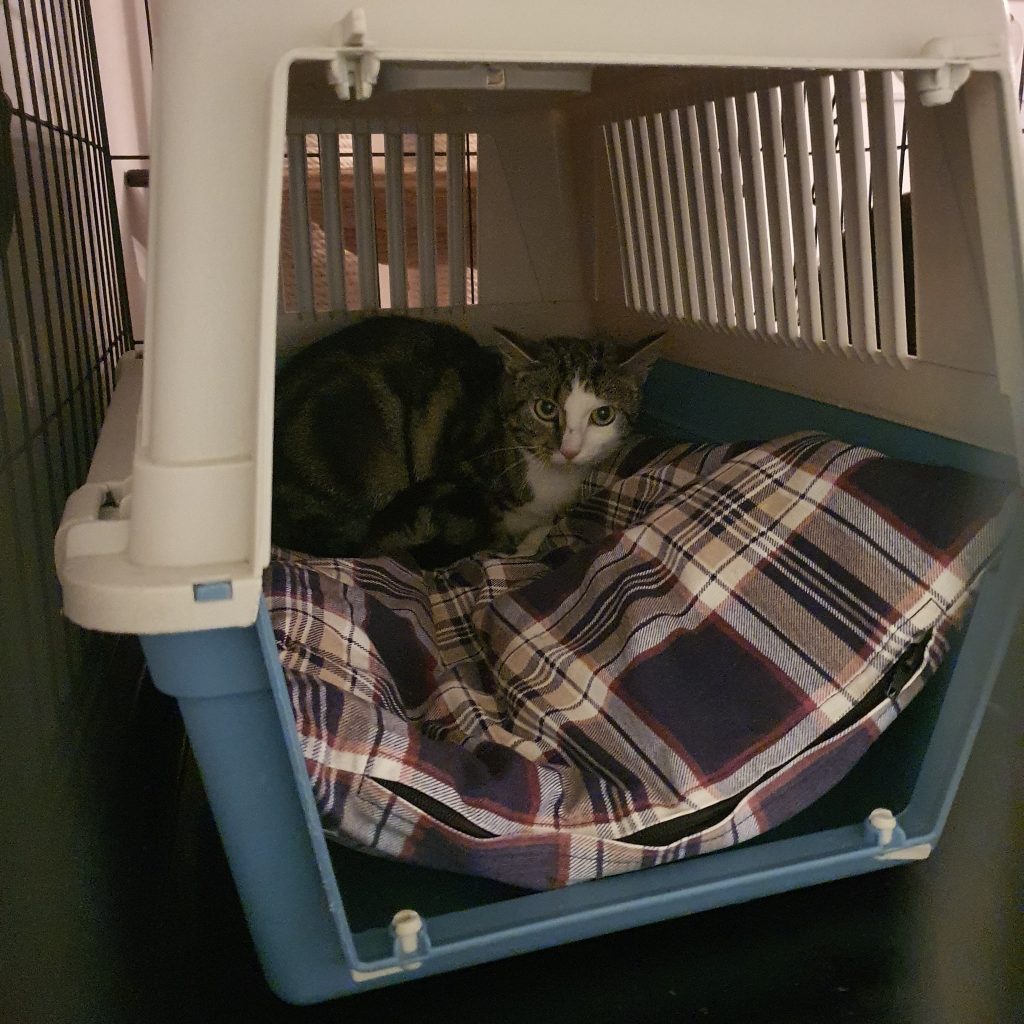 Met de beste wil van de wereld konden die haar echter niet bieden wat Mamalou nodig heeft, namelijk rust en ruimte. Een vriendelijk verzoek of wij iets voor haar konden betekenen nadat zij was gespeend van haar kittens. Ze mocht komen en ze was inmiddels met haar sterilisatie, paspoort, chip en entingen ook prima in orde. Helemaal top! Vanwege haar extreme angst voor mensen hebben we haar in een unit met buitenren geplaatst. Daar verbleef ze geruime tijd. Het ging haar goed hoor, maar niet goed genoeg! Ze bleef erg op zichzelf en zij kon gevoelsmatig niet ver genoeg uit onze buurt blijven tijdens het schoonmaken en verzorgen. Jan en Els bespraken de mogelijkheden om haar meer geluk te bieden en Els zou in overleg met de dame van de stichting beslissen of we de gok zouden nemen om haar de vrijheid van het Kattenwoud te geven. Dat overleg is er nooit gekomen want ze koos zelf het hazenpad toen één van onze vrijwilligers de ren instapte. Dat had ze nooit eerder geprobeerd. Tot ons grote geluk blijft ze ons trouw, op veilige afstand wel te verstaan! Mensen zijn nog steeds NIET leuk, het Kattenwoud is dat gelukkig wel! Mamalou is ook weer één van die diertjes waarvan je denkt, daar doen we het allemaal voor! Zolang zij maar gelukkig zijn met de situatie, omstandigheden die wij ze kunnen bieden. Ik beloof u een betere, meer recente foto zodra Mamalou het daar tenminste mee eens is!